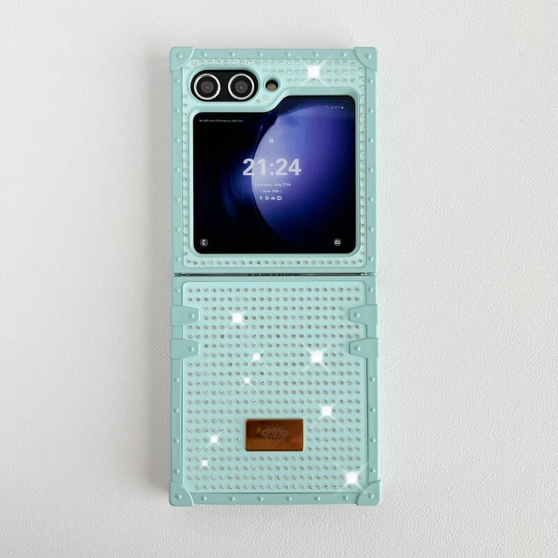 Θήκη για Samsung Galaxy Z Flip6 5G από πολυανθρακικό υλικό με πλήρη διαμαντένια επένδυση, ανθεκτική σε κρούσεις και με λογότυπο διαμαντιού (Μαύρο)