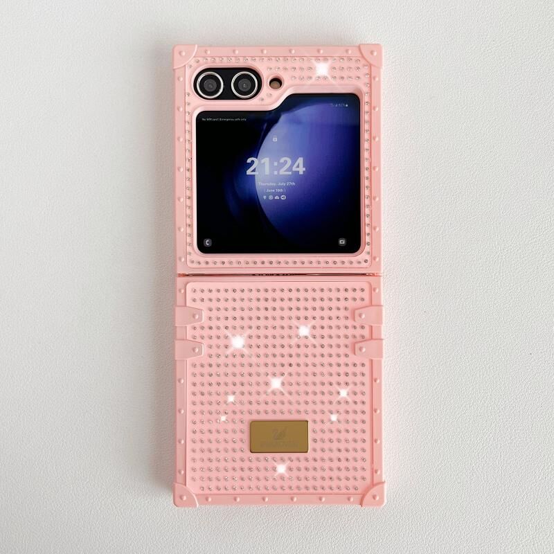 Θήκη για Samsung Galaxy Z Flip6 5G από πολυανθρακικό υλικό με πλήρη διαμάντια, αντικραδασμική, αναδιπλούμενη, με λογότυπο κύκνου (Μαύρο)