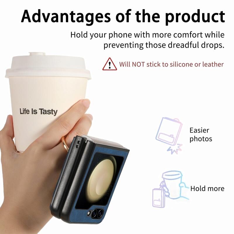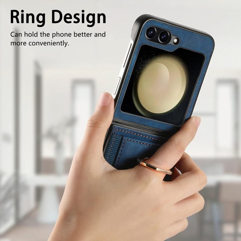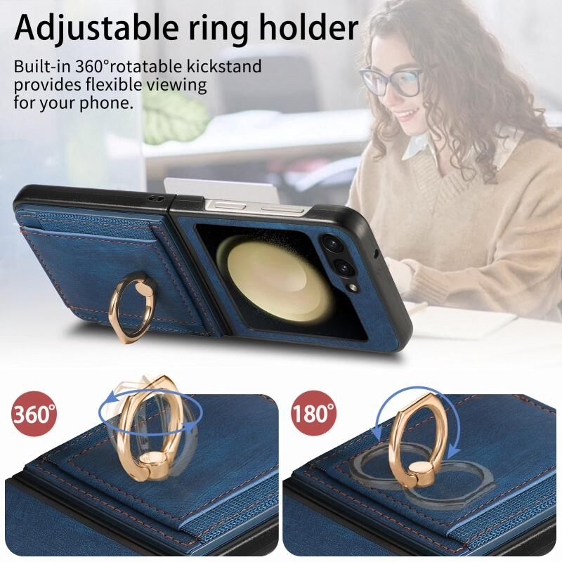 Για το Samsung Galaxy Z Flip6 5G 5G Retro δέρμα αίσθηση δαχτυλίδι δαχτυλίδι πολλαπλών καρτών πορτοφόλι υπόθεση τηλεφώνου (μπλε)