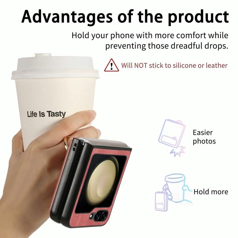 Για το Samsung Galaxy Z Flip6 5G 5G Retro δέρμα αίσθηση δαχτυλίδι δαχτυλίδι πολλαπλών καρτών πορτοφόλι υπόθεση τηλεφώνου (ροζ)