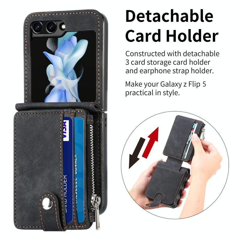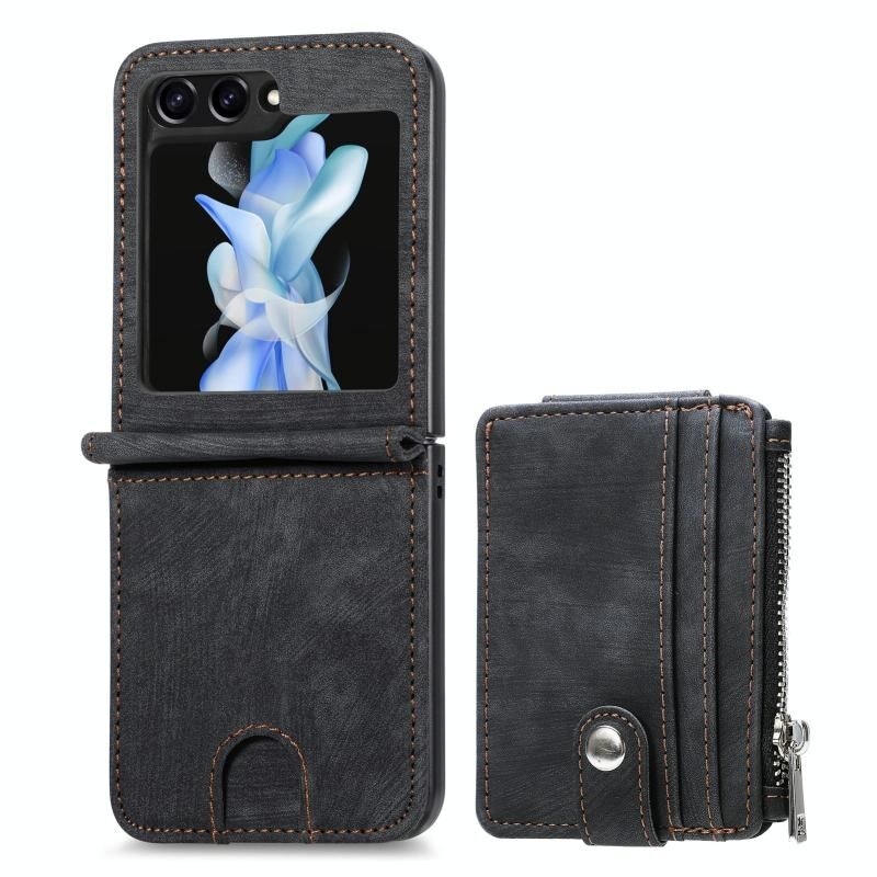 2. Λειτουργία πορτοφολιού με φερμουάρ: Η δερμάτινη θήκη είναι εξοπλισμένη με υποδοχές για κάρτες και ένα μικρό ποσό μετρητών.