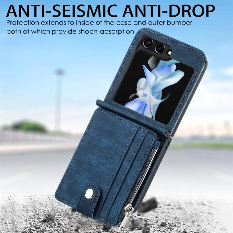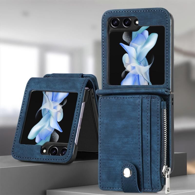 Θήκη τηλεφώνου Samsung Galaxy Z Flip6 5G με υφή δέρματος PU και φερμουάρ, σε ροζ χρώμα.