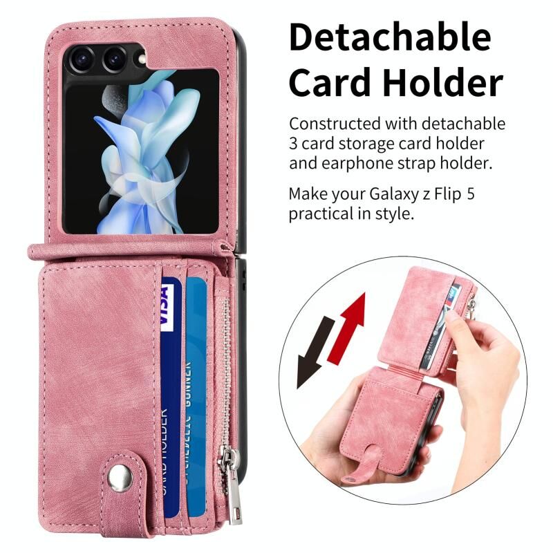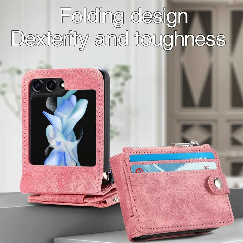 2. Λειτουργία πορτοφολιού με φερμουάρ: Η δερμάτινη θήκη είναι εξοπλισμένη με υποδοχές για κάρτες και ένα μικρό ποσό μετρητών.