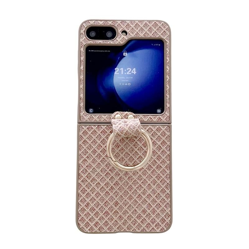 For Samsung Galaxy Z Flip6 5G Sparkling Diamond Rhombus PC Phone Case with Ring(Gold)