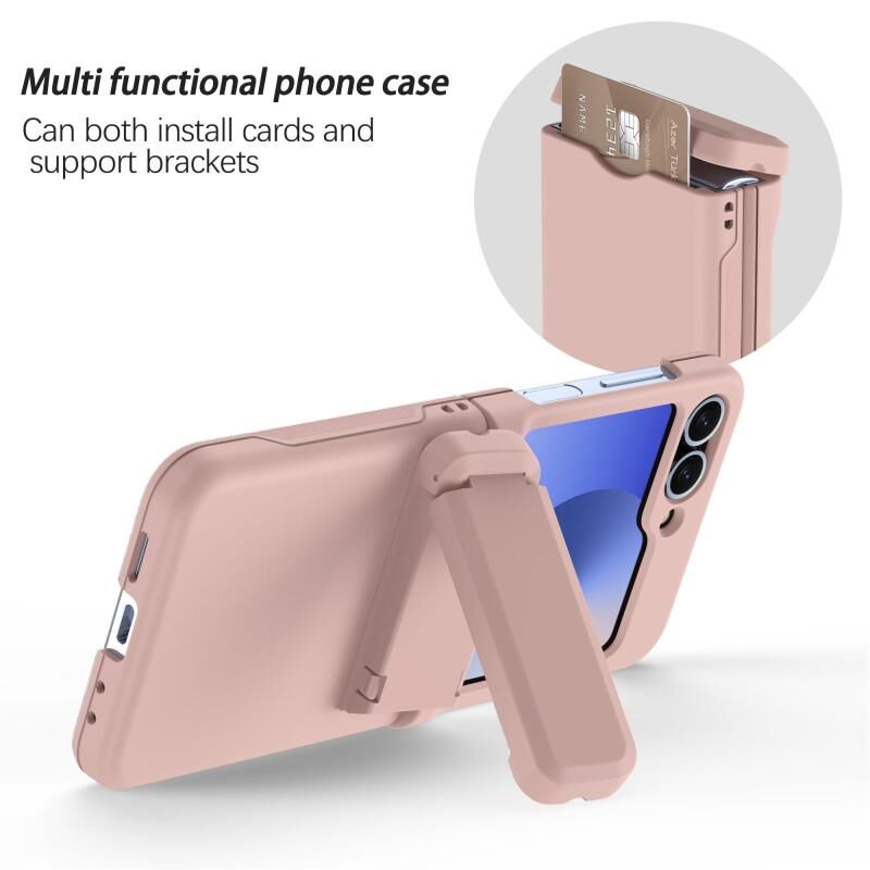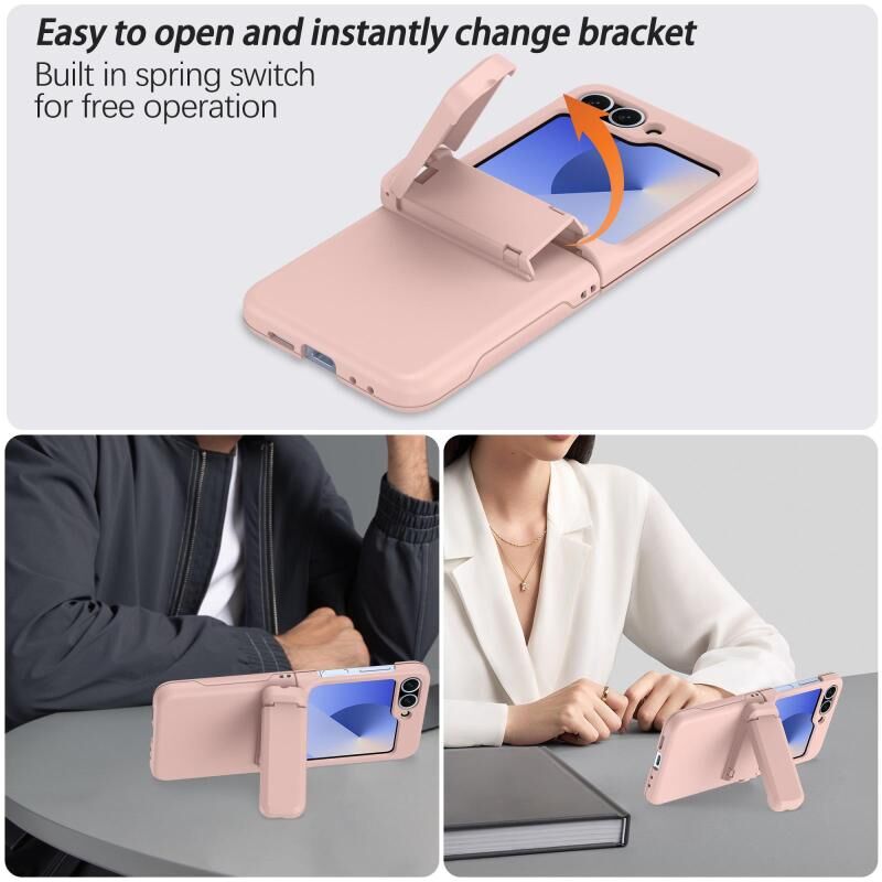 Θήκη για Samsung Galaxy Z Flip6 5G, ανοιγόμενη, από PC με αλυσίδα από καουτσούκ, υποδοχή για κάρτα και βάση στήριξης (Λευκό)