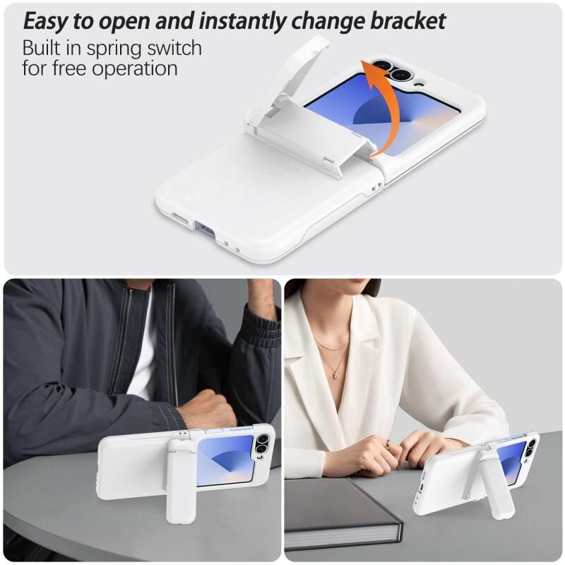 Θήκη για Samsung Galaxy Z Flip6 5G, ανοιγόμενη, από PC με αλυσίδα από καουτσούκ, υποδοχή για κάρτα και βάση στήριξης (Λευκό)