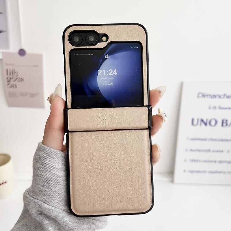 Για Samsung Galaxy Z Flip6 5G Τρία τεμάχια σετ Morandi στερεό χρώμα δέρμα υφή υπόθεση τηλέφωνο (χρυσό)