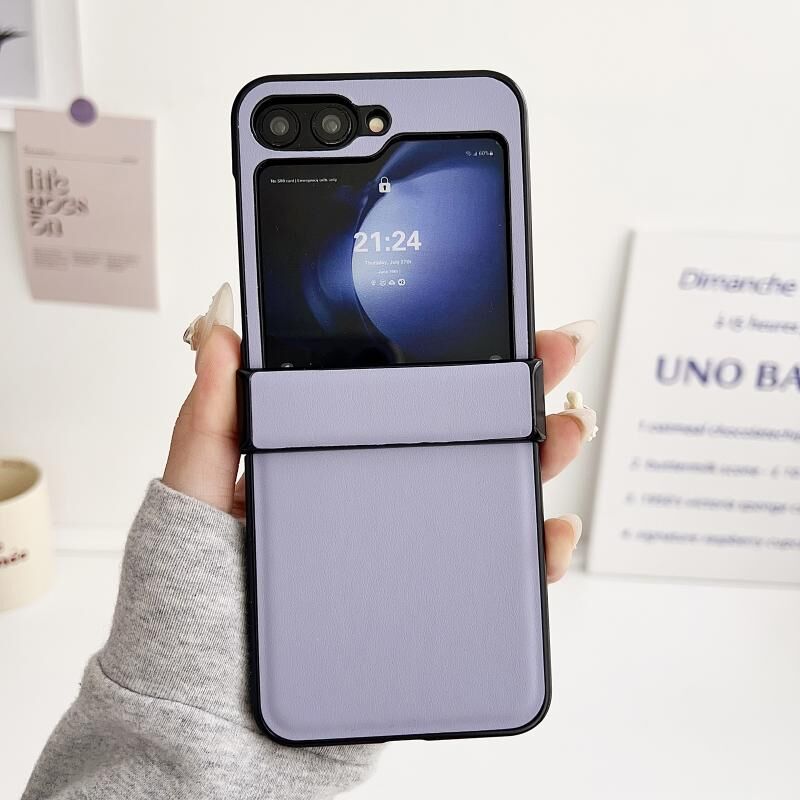 Για το Samsung Galaxy Z Flip6 5G Τρία τεμάχια Morandi στερεό χρώμα δερμάτινη θήκη τηλεφώνου υφή (μωβ)