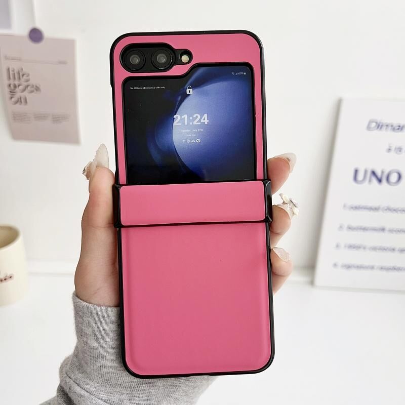 Για το Samsung Galaxy Z Flip6 5G Τρία τεμάχια Morandi στερεό χρώμα δερμάτινη θήκη τηλεφώνου υφή (Rose Red)