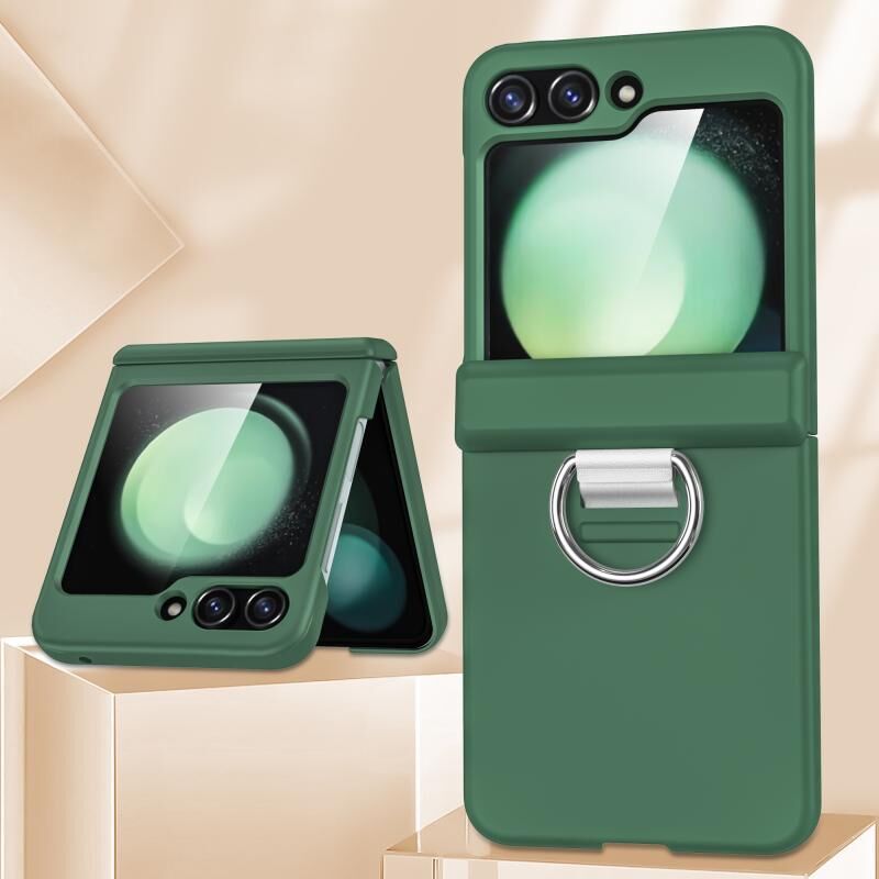 Για Samsung Galaxy Z Flip6 5G TPU + PC Πτυσσόμενο κέντρο άξονα υπόθεση τηλεφώνου με δαχτυλίδι (σκούρο πράσινο)