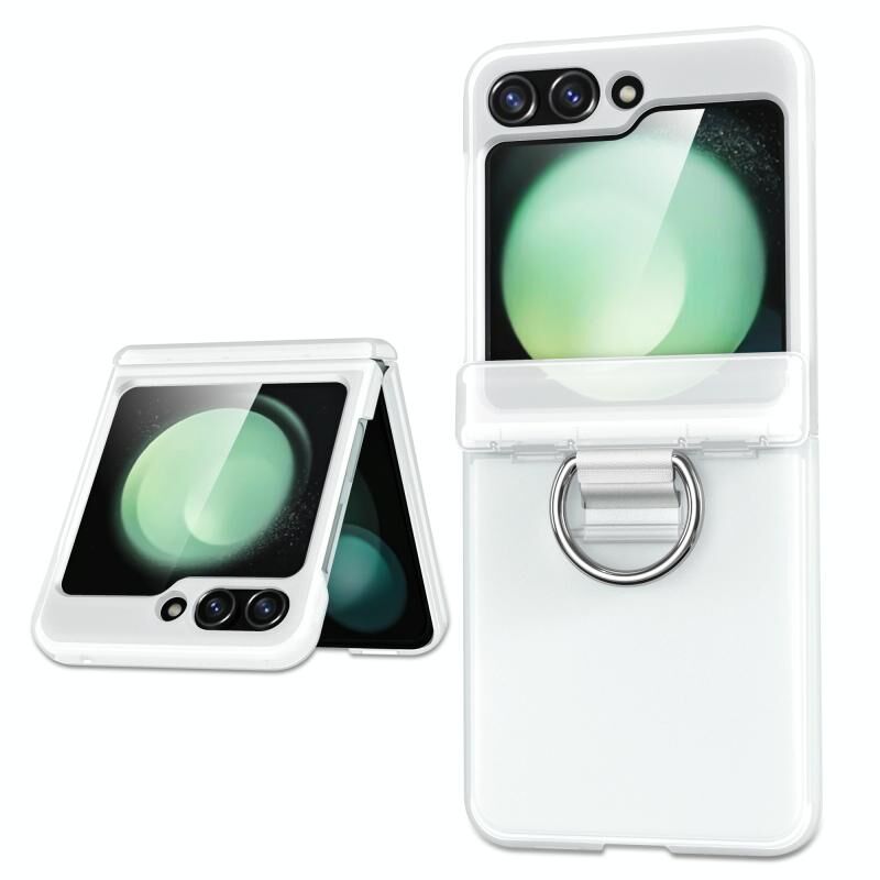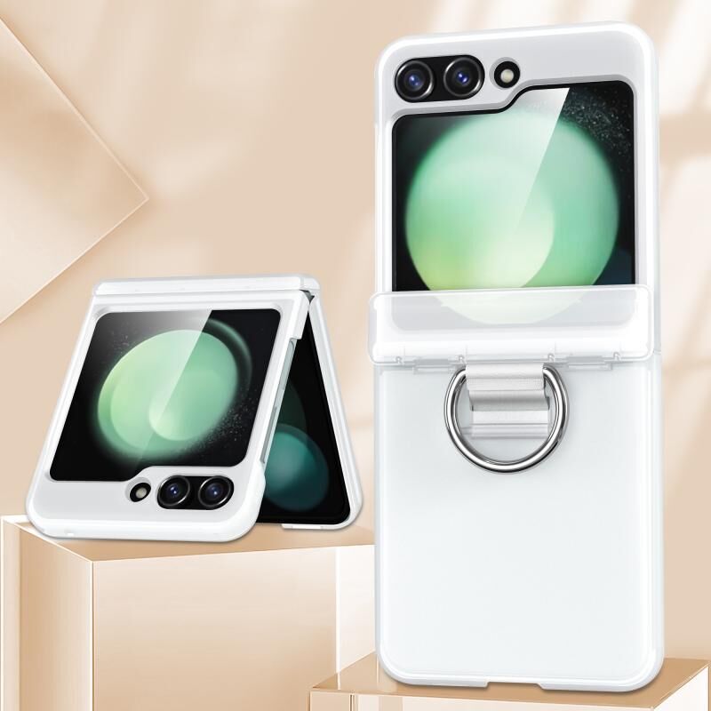 Για Samsung Galaxy Z Flip6 5G TPU + PC Πτυσσόμενο κέντρο άξονα υπόθεση τηλεφώνου με δαχτυλίδι (Ματ λευκό)