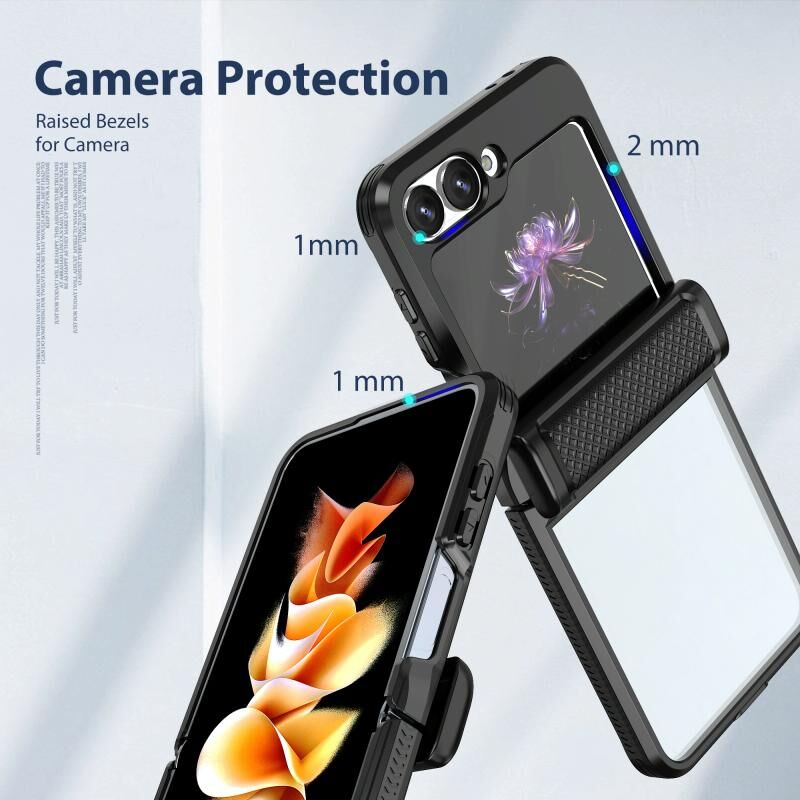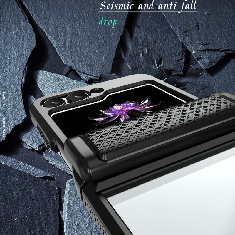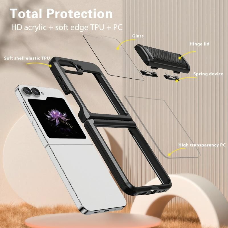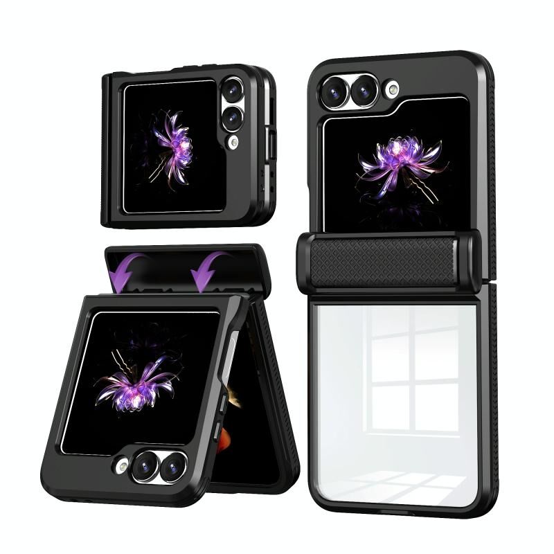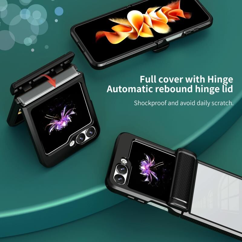 Για Samsung Galaxy Z Flip6 5G Διαφανές γυαλί μετριασμένο γυαλί Shockproof Πτυσσόμενη θήκη τηλεφώνου με μεντεσέ (μπλε)