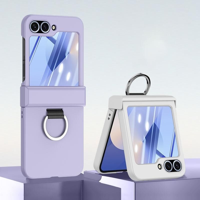 Θήκη τηλεφώνου με δακτύλιο για Samsung Galaxy Z Flip6 5G, εξαιρετικά λεπτή, με αίσθηση δέρματος και προστασία μεντεσέ (Λευκό)