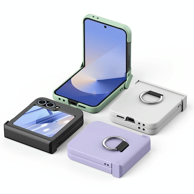 Θήκη τηλεφώνου με δακτύλιο για Samsung Galaxy Z Flip6 5G, εξαιρετικά λεπτή, με αίσθηση δέρματος και προστασία μεντεσέ (Λευκό)