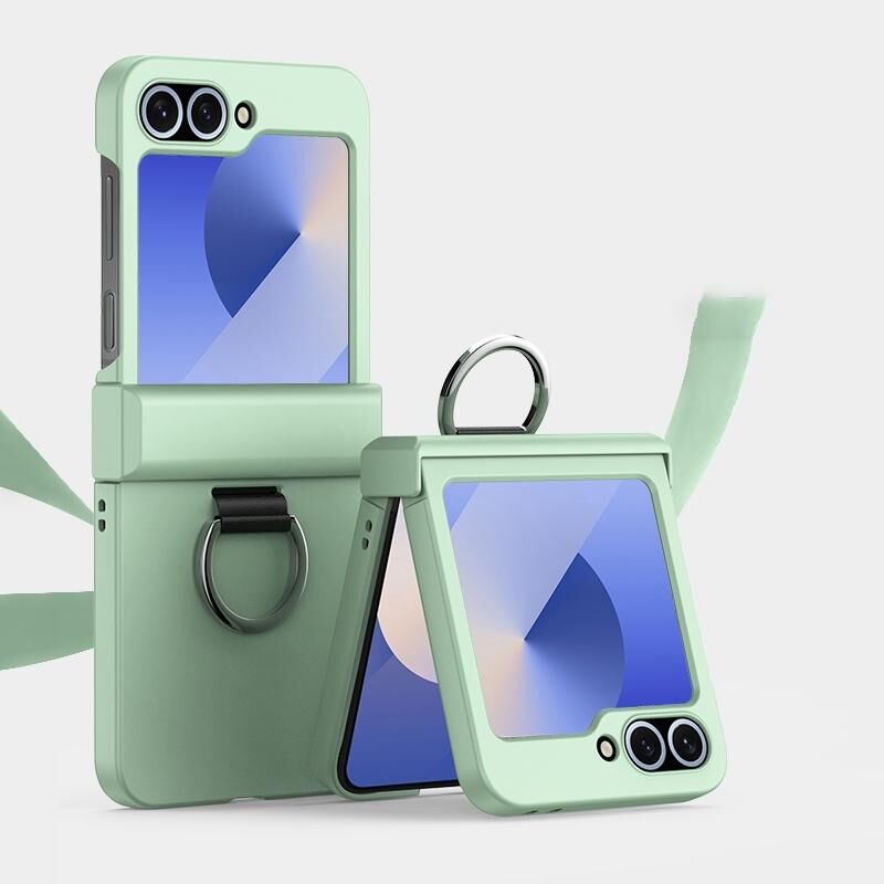 Θήκη τηλεφώνου με δακτύλιο για Samsung Galaxy Z Flip6 5G, εξαιρετικά λεπτή, με αίσθηση δέρματος και προστασία μεντεσέ (Λευκό)