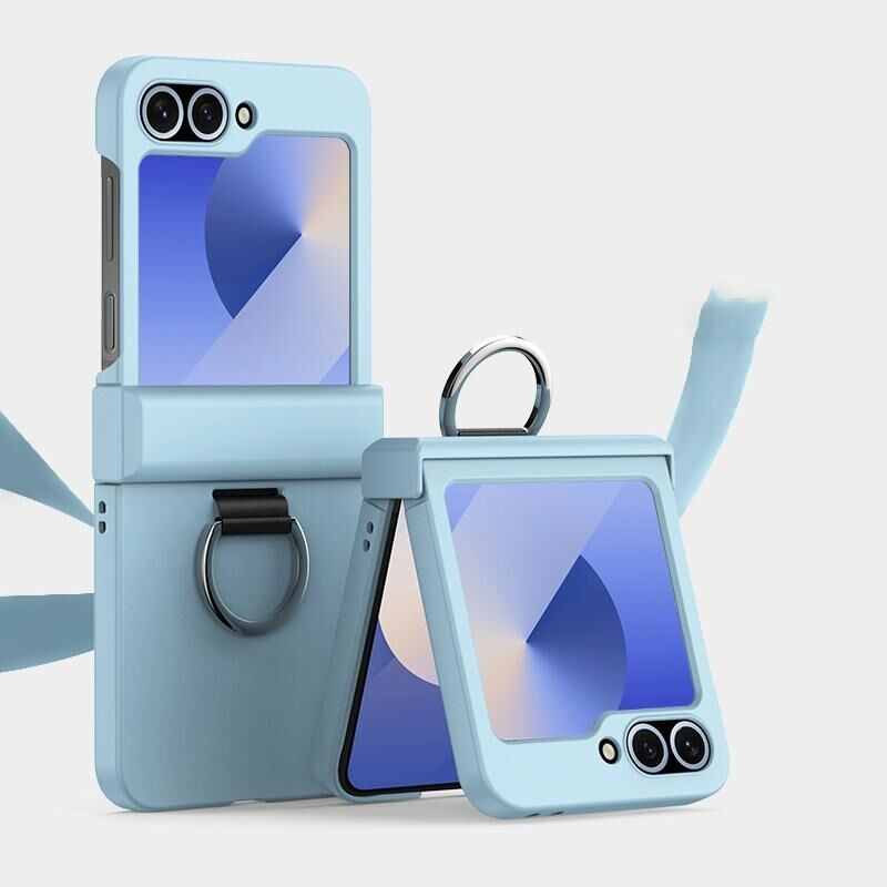 Θήκη τηλεφώνου με δακτύλιο για Samsung Galaxy Z Flip6 5G, εξαιρετικά λεπτή, με αίσθηση δέρματος και προστασία μεντεσέ (Λευκό)