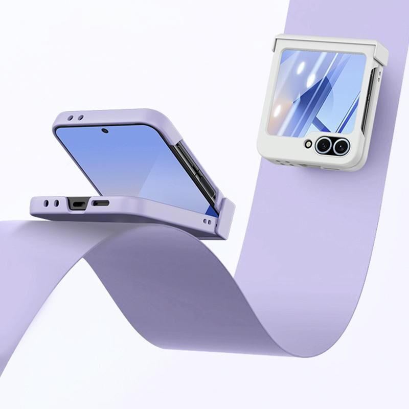 Θήκη τηλεφώνου με δακτύλιο για Samsung Galaxy Z Flip6 5G, εξαιρετικά λεπτή, με αίσθηση δέρματος και προστασία μεντεσέ (Λευκό)