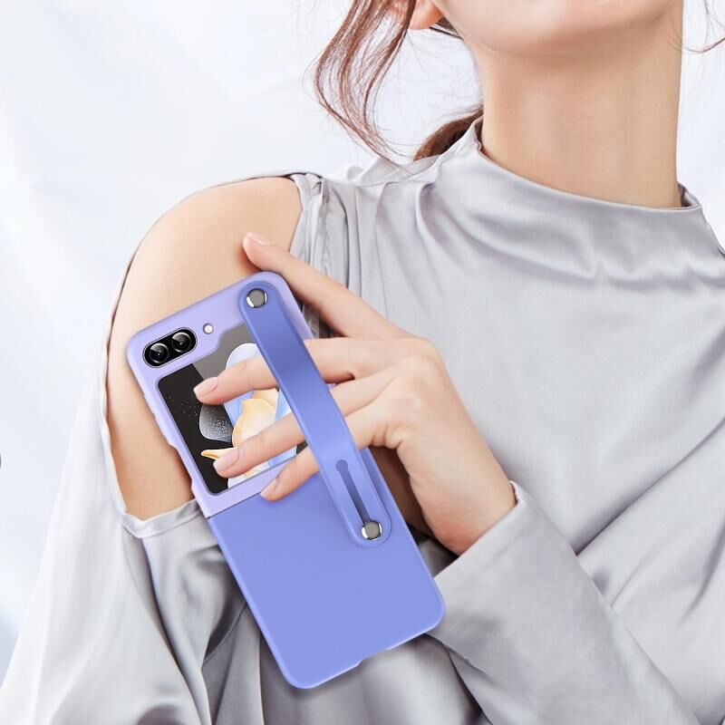Για Samsung Galaxy Z Flip6 5G Wrist-strap Απλή δερμάτινη θήκη τηλεφώνου (μπλε)