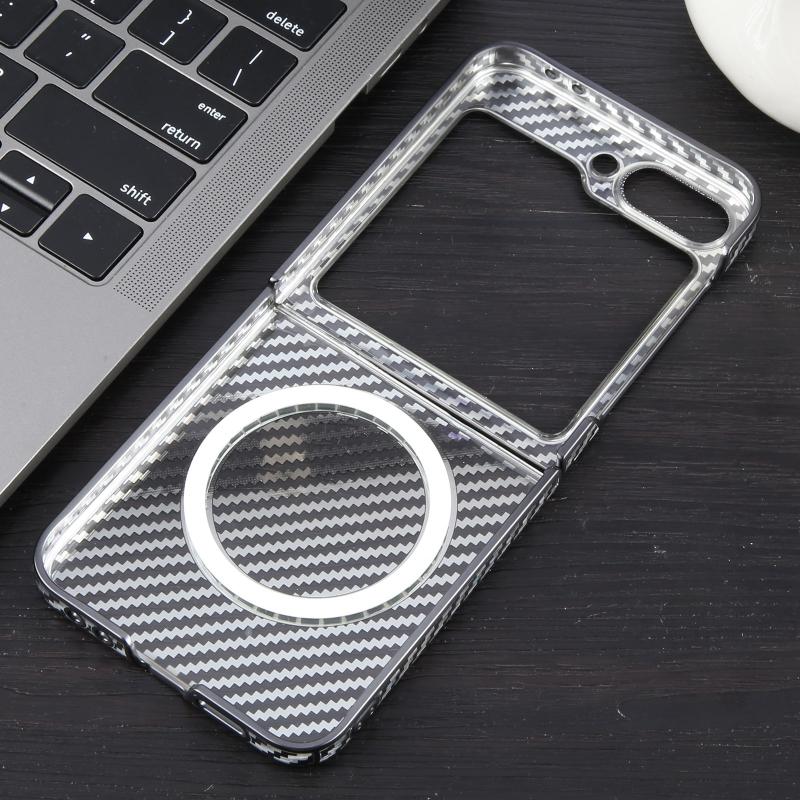 For Samsung Galaxy Z Flip6 6D Plated Carbon Fiber Clear Magsafe PC Phone Case(Starry Black)