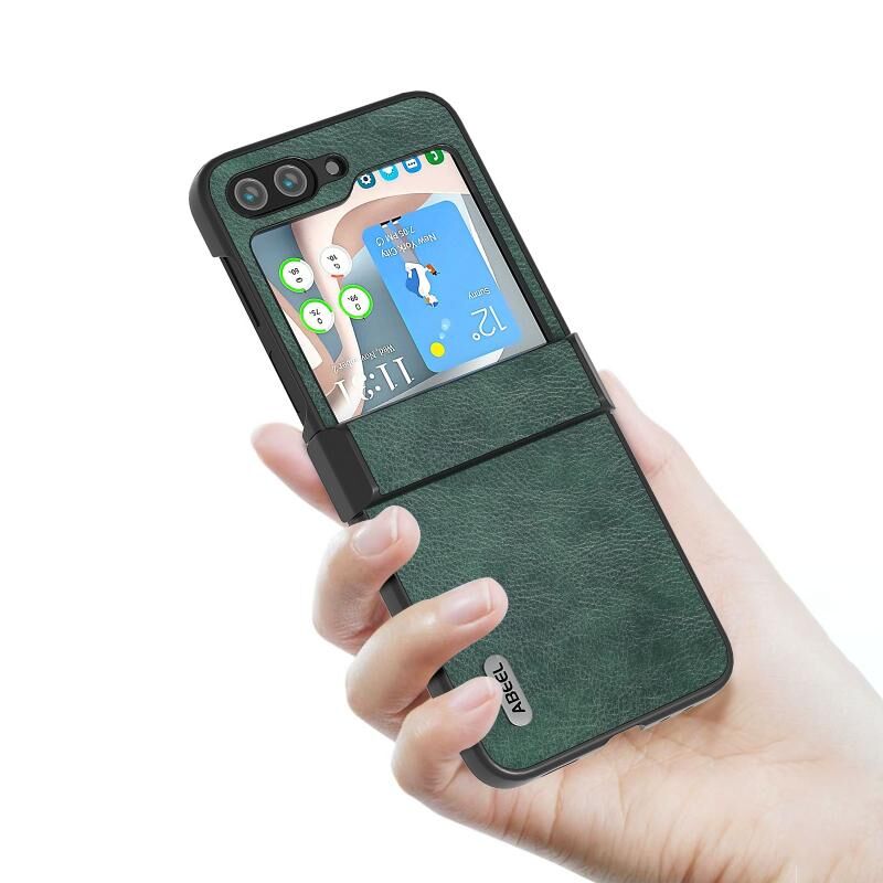 Θήκη τηλεφώνου Samsung Galaxy Z Flip6 ABEEL Διπλής Απόχρωσης με Υφή Lichi από PU (Μαύρο)