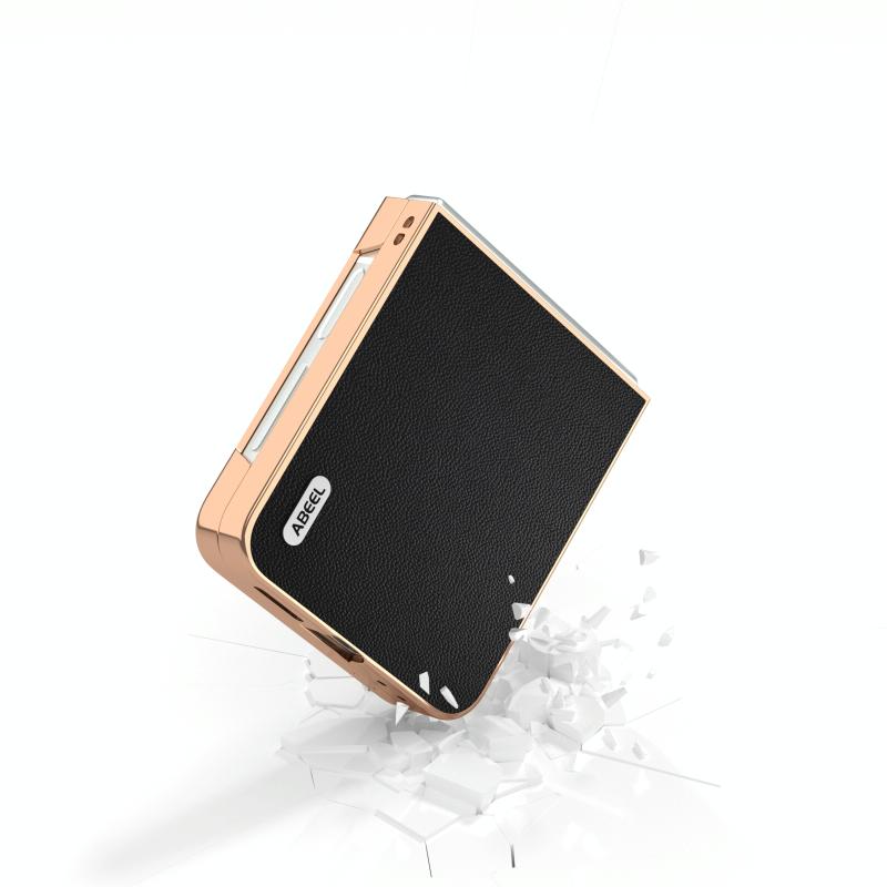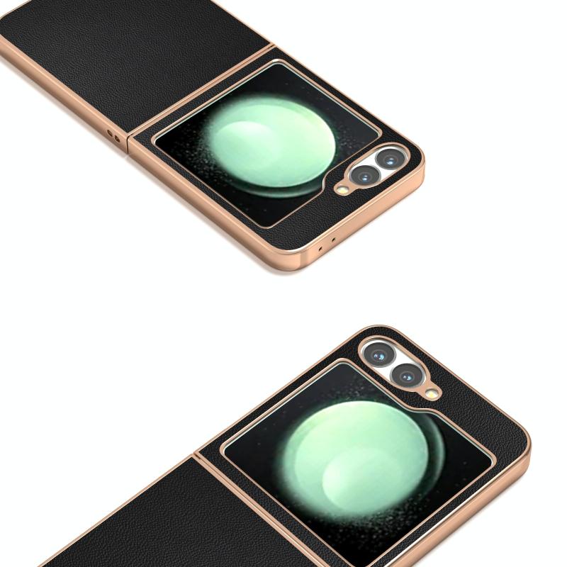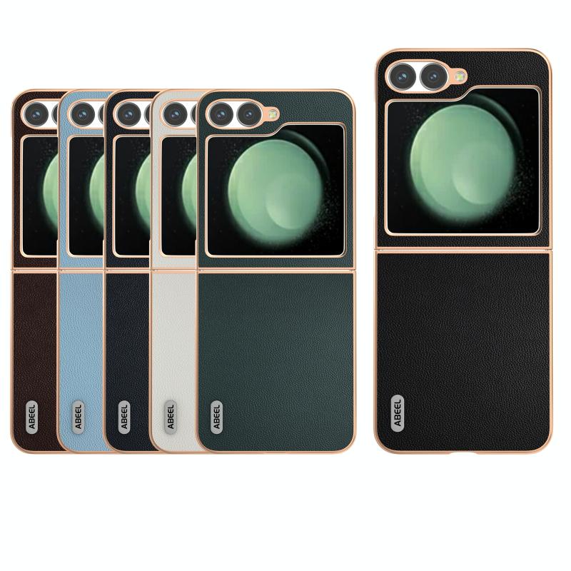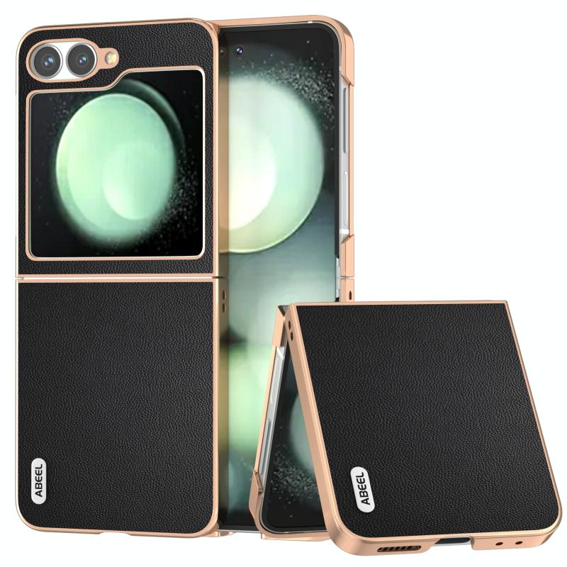 For Samsung Galaxy Z Flip6 ABEEL Electroplated Frame Genuine Leather Elegant Phone Case(Black)