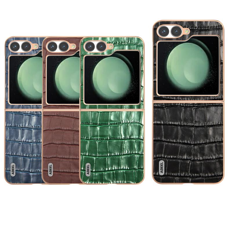 For Samsung Galaxy Z Flip6 ABEEL Electroplating Frame Crocodile Texture Genuine Leather Phone Case(Blue)