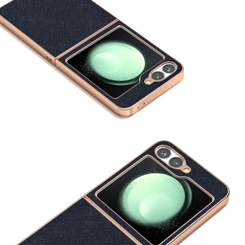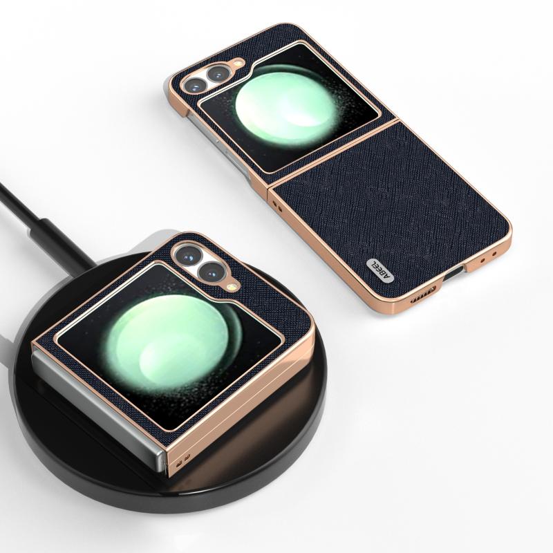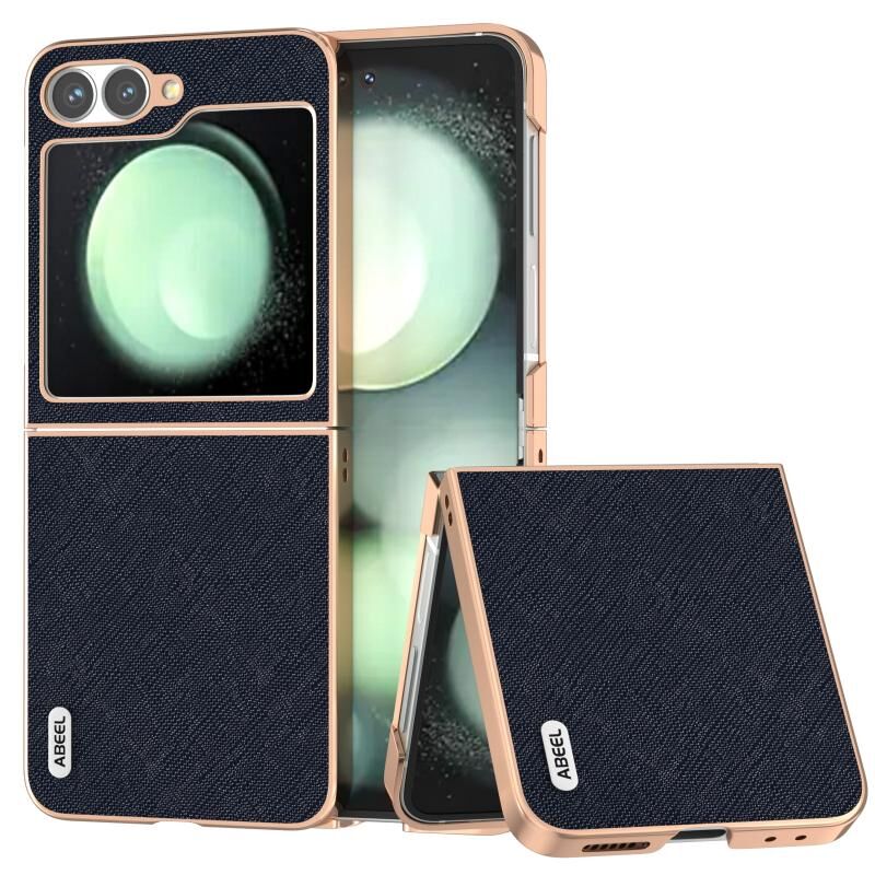 For Samsung Galaxy Z Flip6 ABEEL Electroplating Frame Cross Texture Genuine Leather Phone Case(Blue)