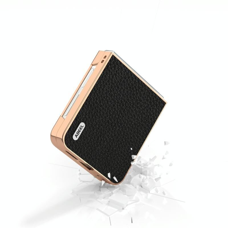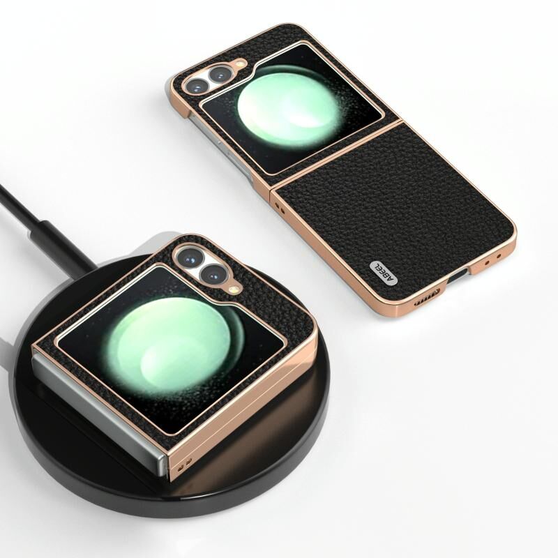 For Samsung Galaxy Z Flip6 ABEEL Electroplating Frame Genuine Leather Litchi Texture Phone Case(Black)