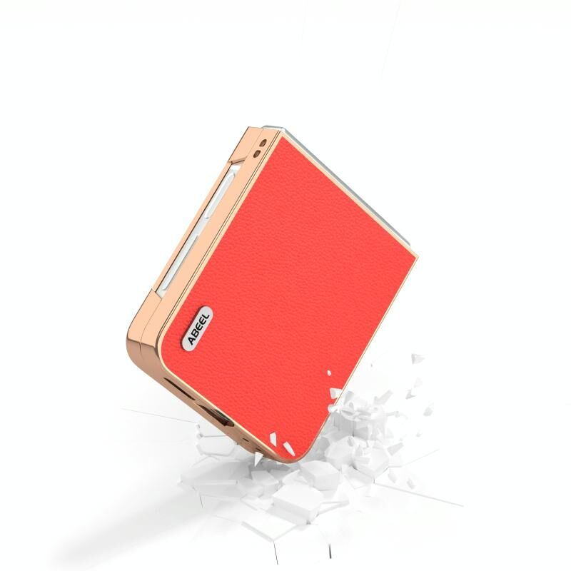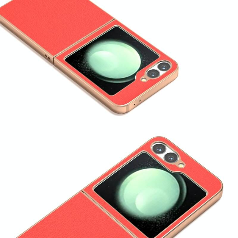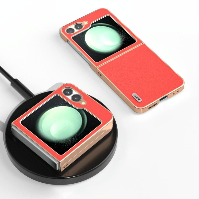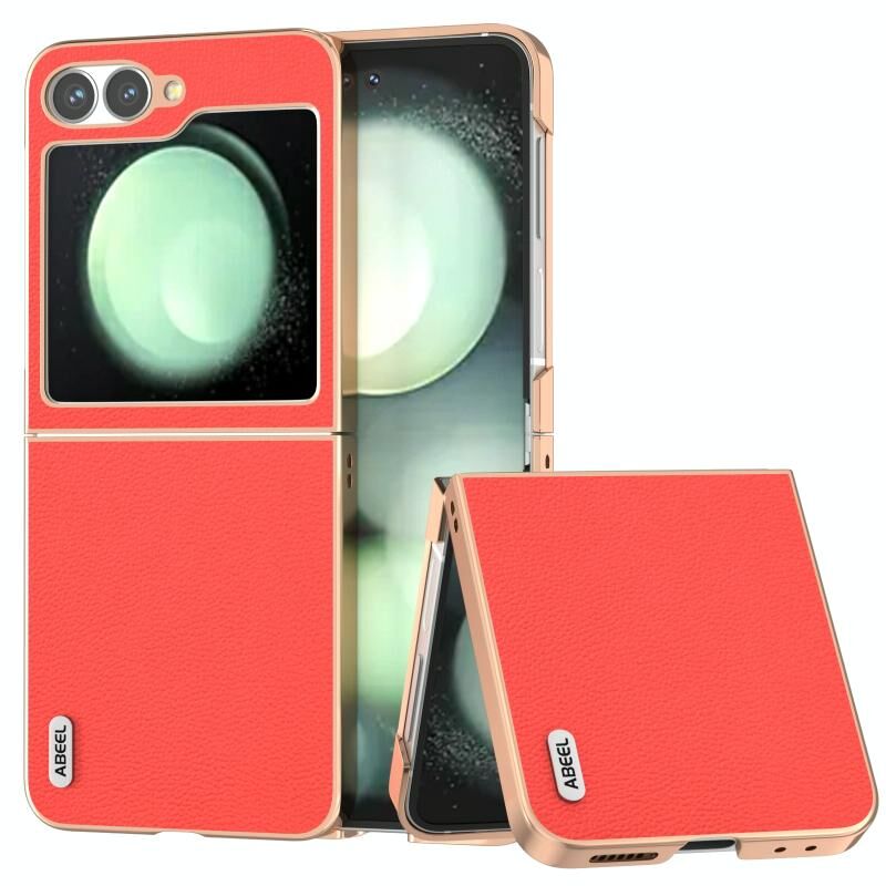 For Samsung Galaxy Z Flip6 ABEEL Electroplating Frame Genuine Leather Luolai Series Phone Case(Red)