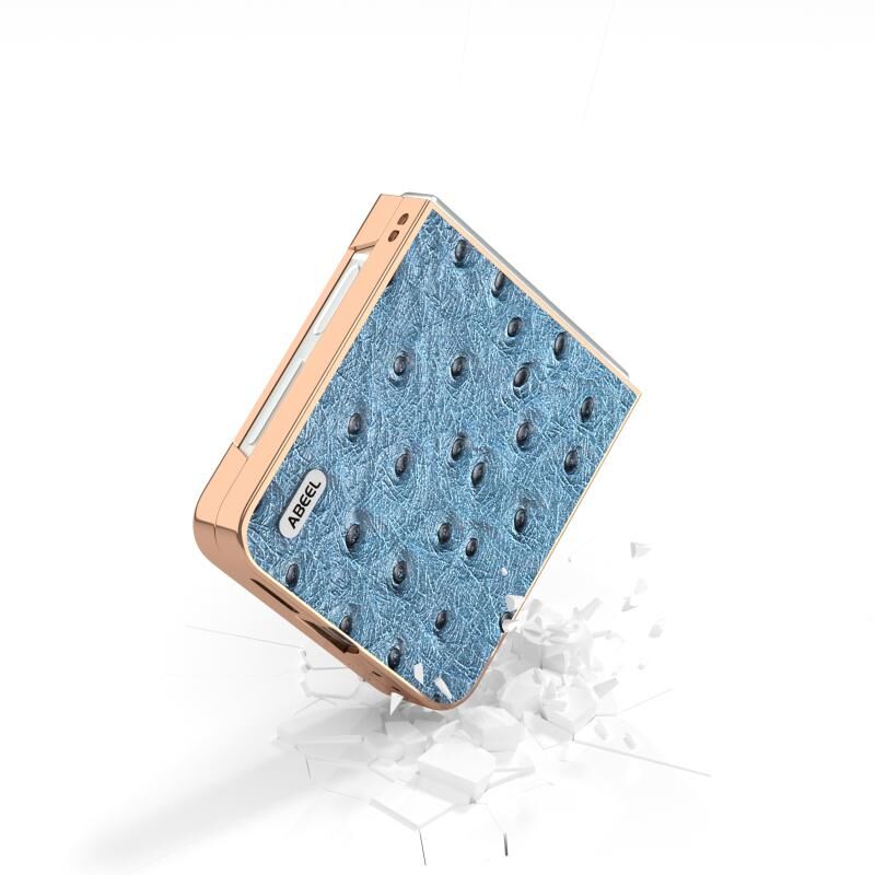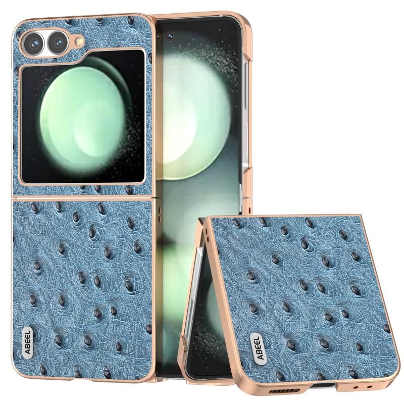 For Samsung Galaxy Z Flip6 ABEEL Electroplating Frame Genuine Leather Ostrich Texture Phone Case(Dark Blue)