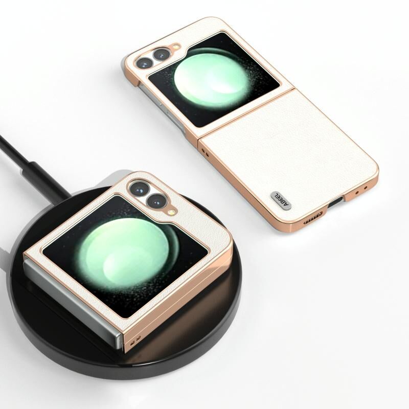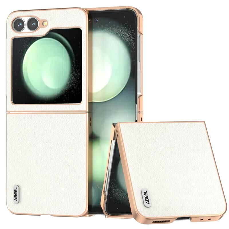 Θήκη κινητού τηλεφώνου Samsung Galaxy Z Flip6 ABEEL με ηλεκτρολυτικό πλαίσιο και γνήσιο δέρμα σε κυματιστό σχέδιο (Μαύρο)