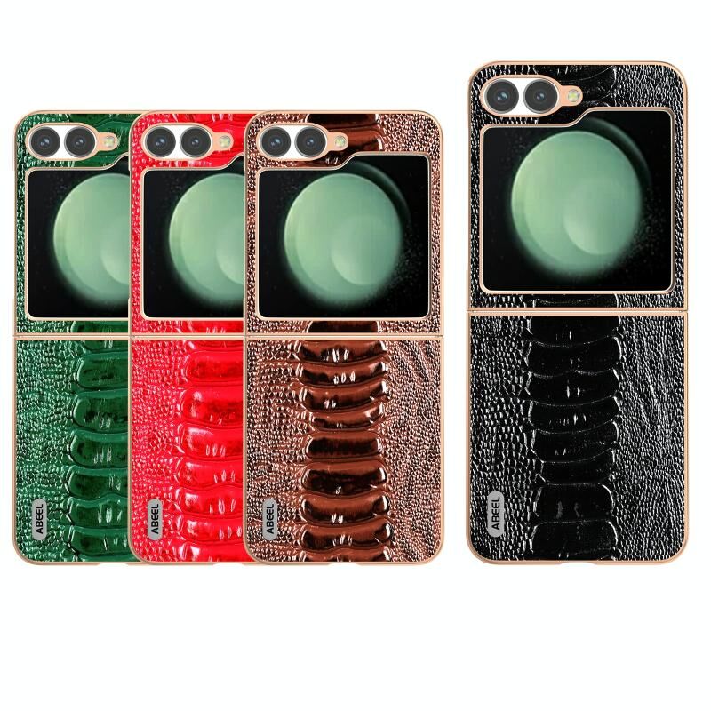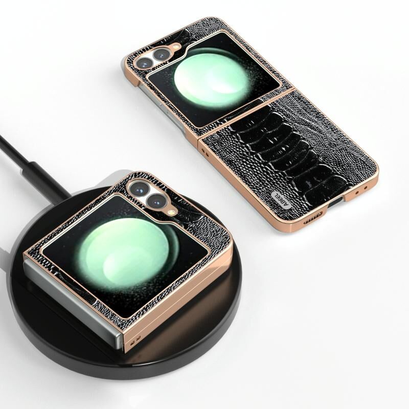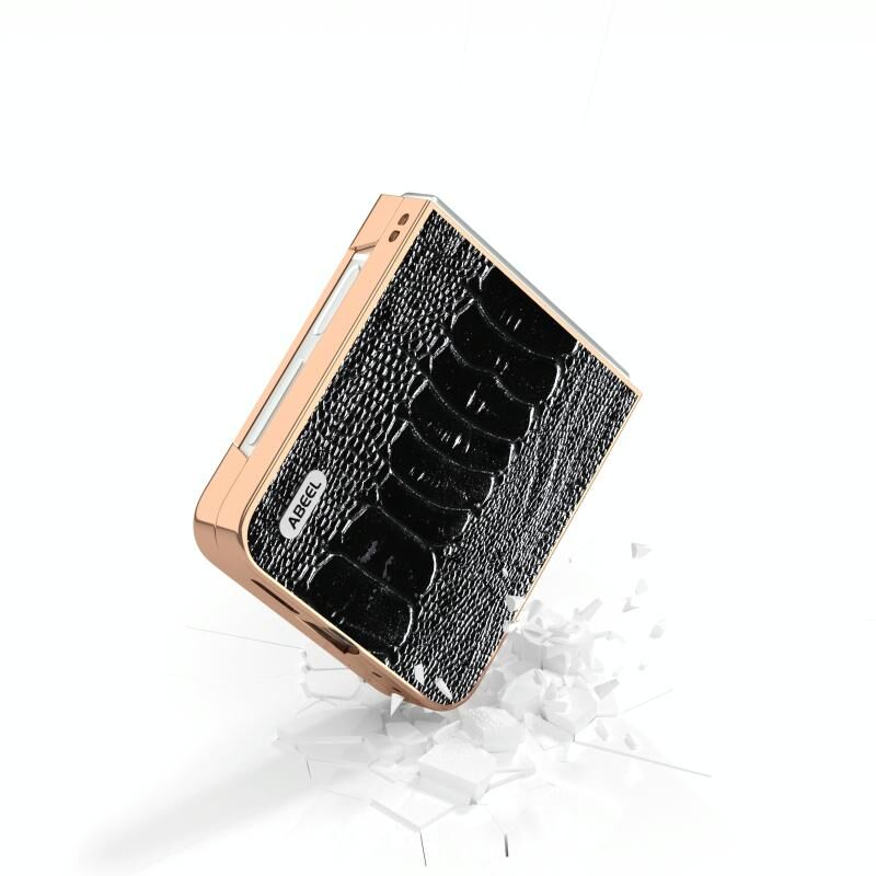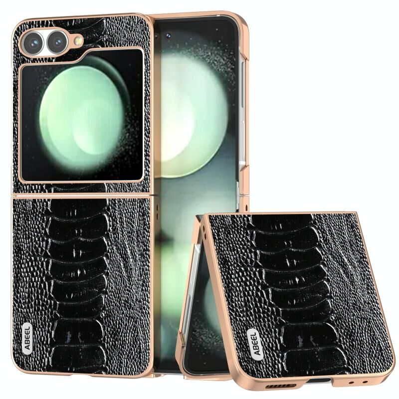 For Samsung Galaxy Z Flip6 ABEEL Electroplating Frame Genuine Leather Weilai Series Phone Case(Black)