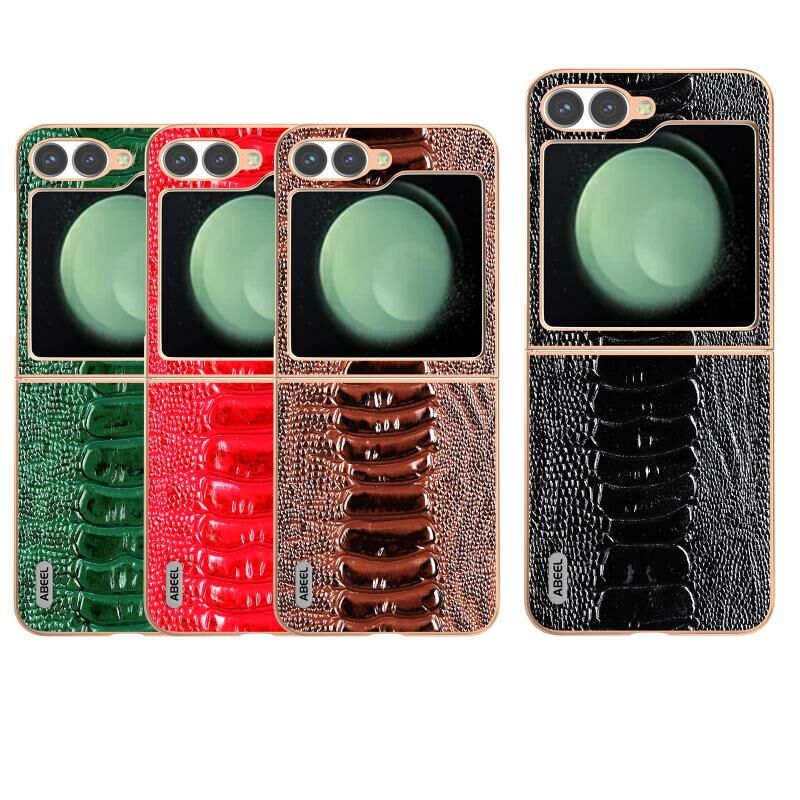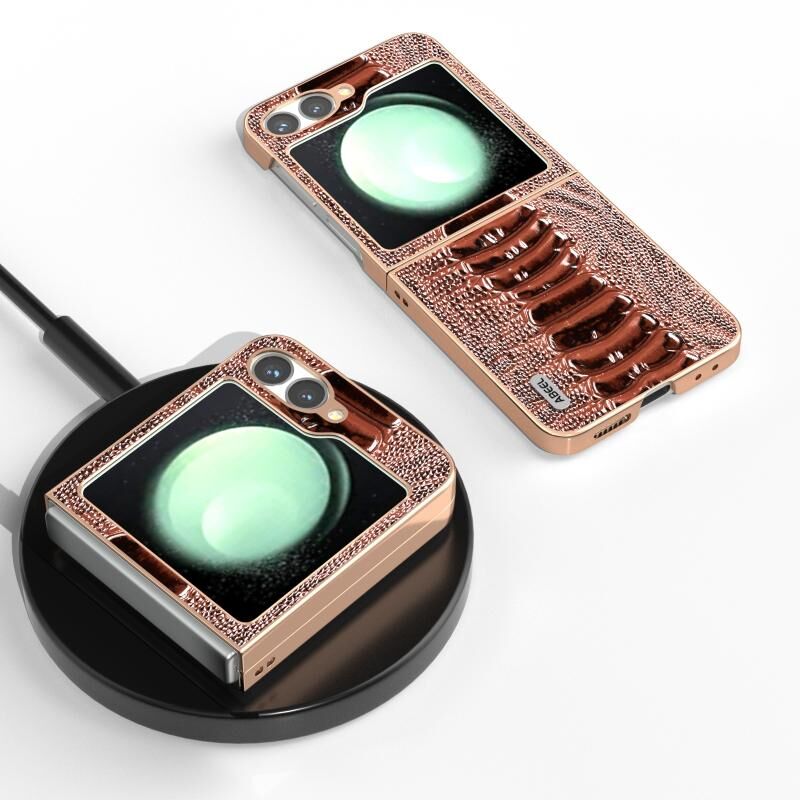 For Samsung Galaxy Z Flip6 ABEEL Electroplating Frame Genuine Leather Weilai Series Phone Case(Coffee)