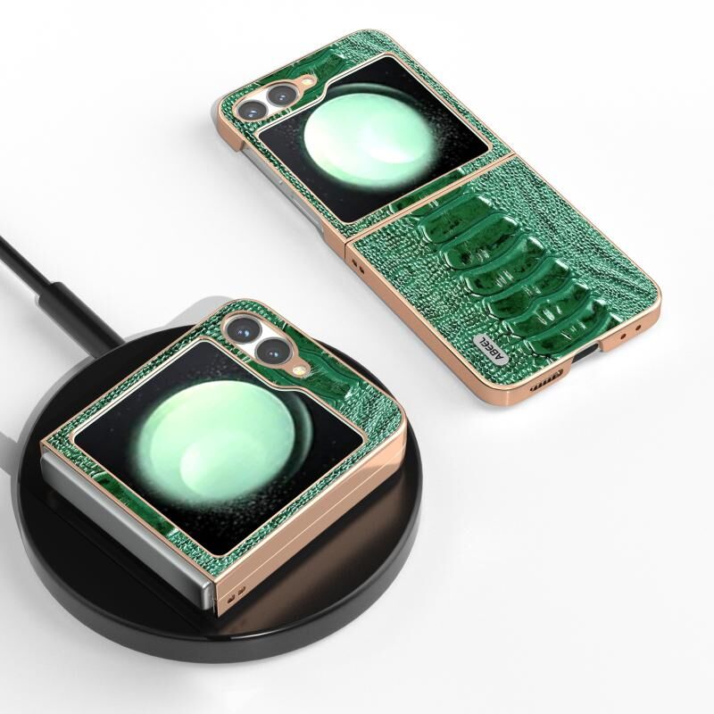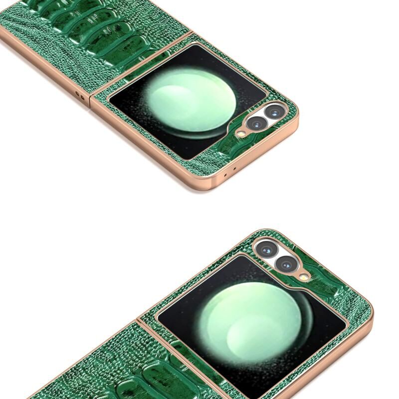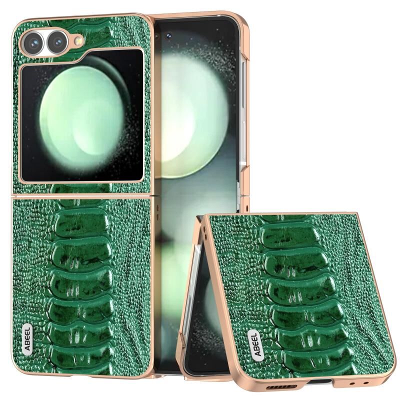 For Samsung Galaxy Z Flip6 ABEEL Electroplating Frame Genuine Leather Weilai Series Phone Case(Green)