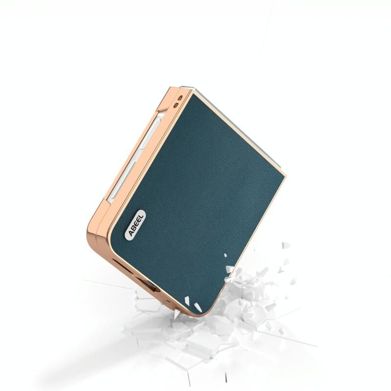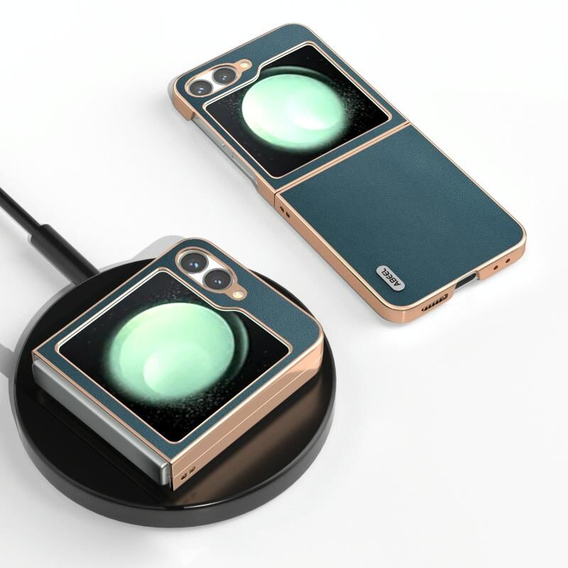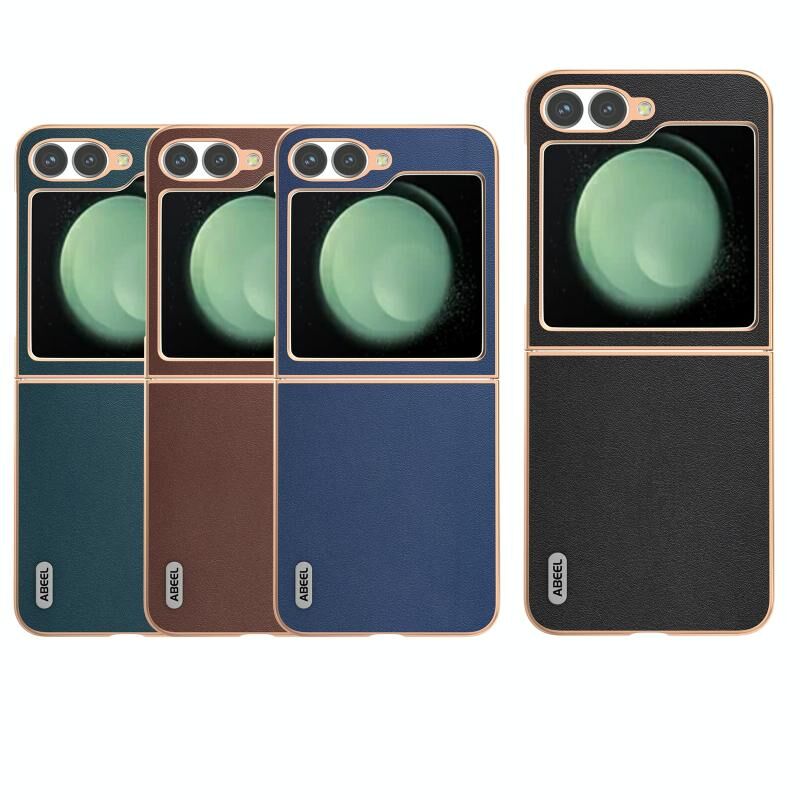 For Samsung Galaxy Z Flip6 ABEEL Electroplating Frame Genuine Leather Xiaoya Series Phone Case(Dark Green)