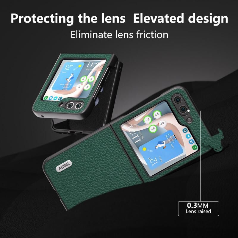 Θήκη τηλεφώνου από γνήσιο δέρμα Samsung Galaxy Z Flip6 ABEEL με υφή λυτσί (Μπλε)