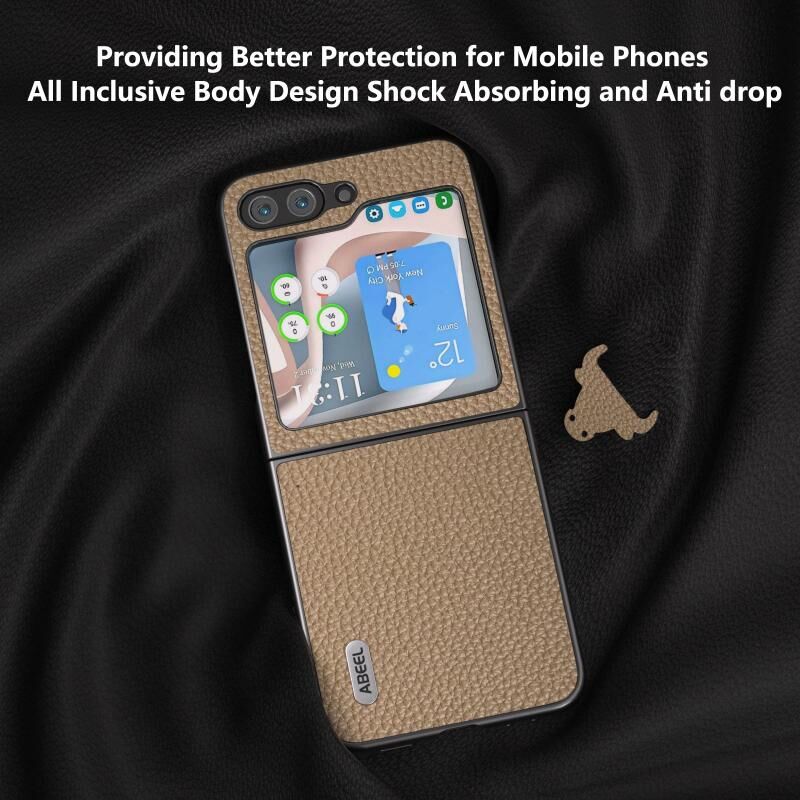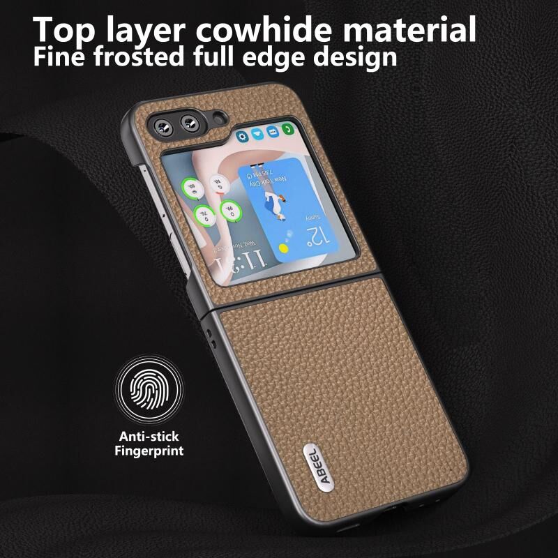 Θήκη τηλεφώνου από γνήσιο δέρμα Samsung Galaxy Z Flip6 ABEEL με υφή λυτσί (Μπλε)