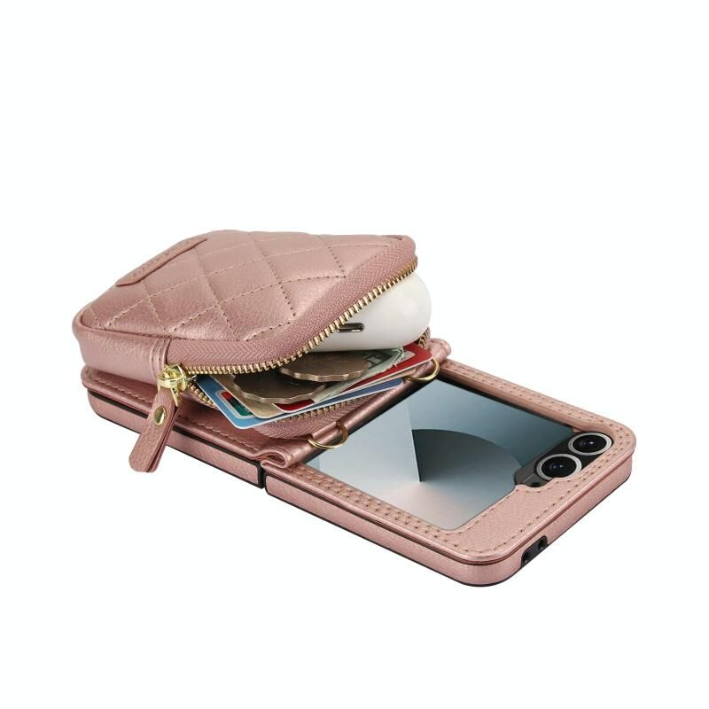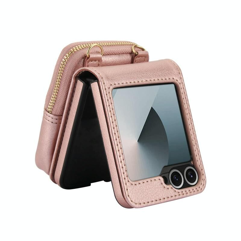 Θήκη κινητού τηλεφώνου AwQuer για Samsung Galaxy Z Flip6, τσάντα crossbody με φερμουάρ και πορτοφόλι από δέρμα λύτσι (Μαύρο) (Awquer)