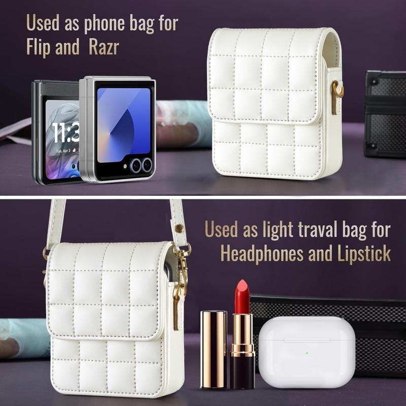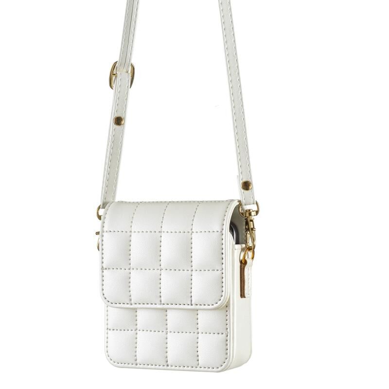 Για Samsung Galaxy Z Flip6 BFB04 καρό σταυρό σώμα πτυσσόμενο τηλέφωνο τσάντα (λευκό)