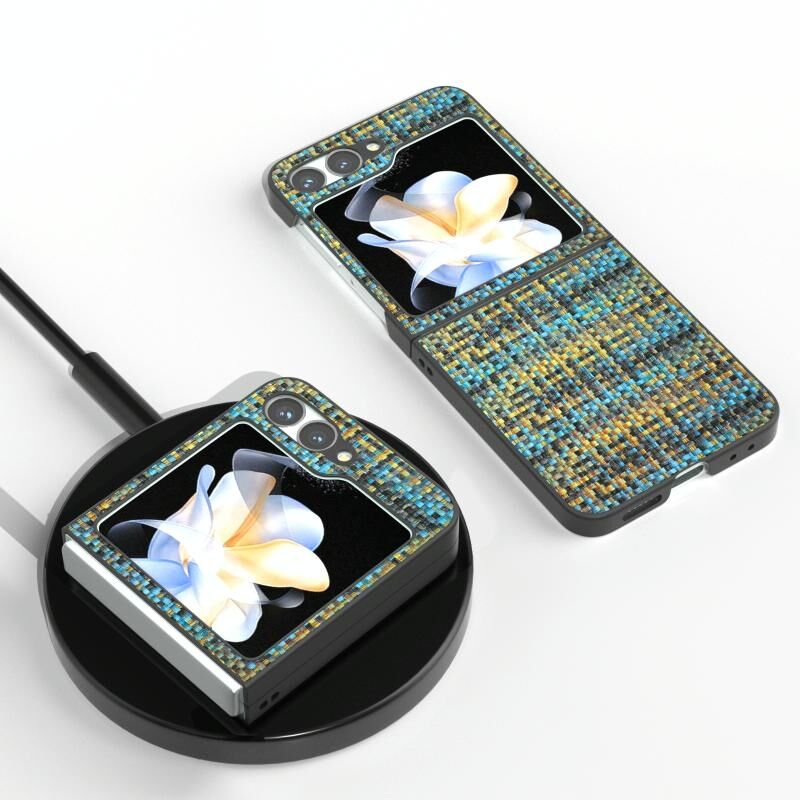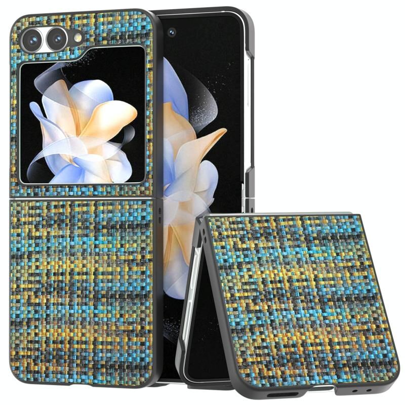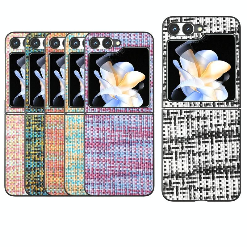 Για Samsung Galaxy Z Flip6 μαύρο πλαίσιο χρώμα πλέγμα υφή PU τηλέφωνο υπόθεση (χρυσό)