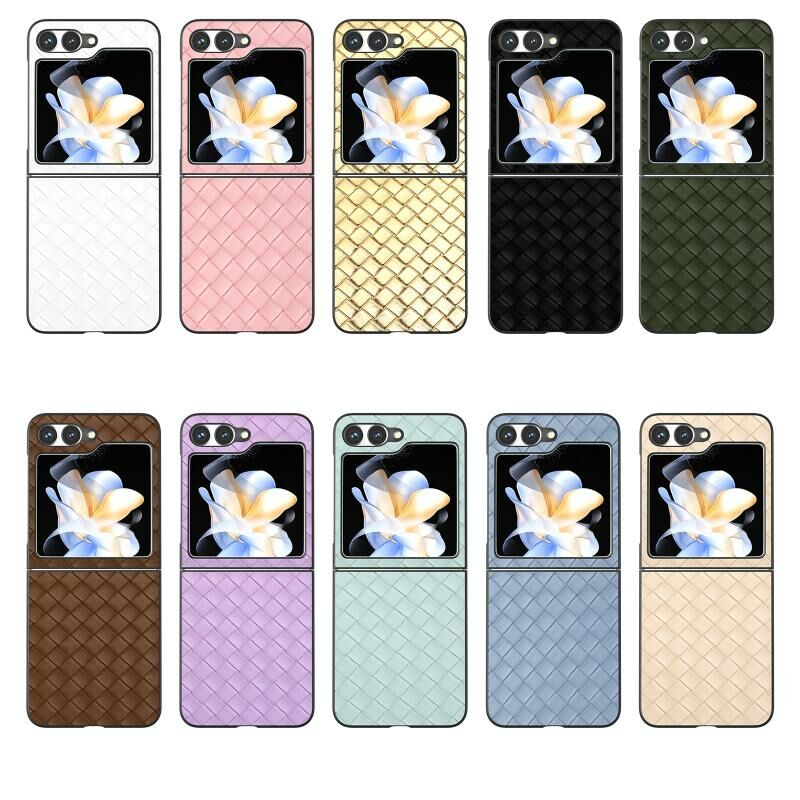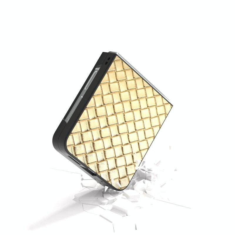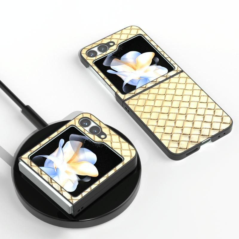 Για Samsung Galaxy Z Flip6 μαύρο πλαίσιο υφαντά υφή PU υπόθεση τηλεφώνου (χρυσό)