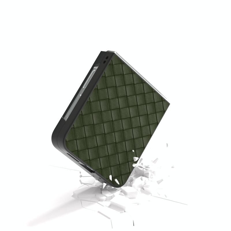Για Samsung Galaxy Z Flip6 μαύρο πλαίσιο υφαντά υφή PU υπόθεση τηλεφώνου (πράσινο)