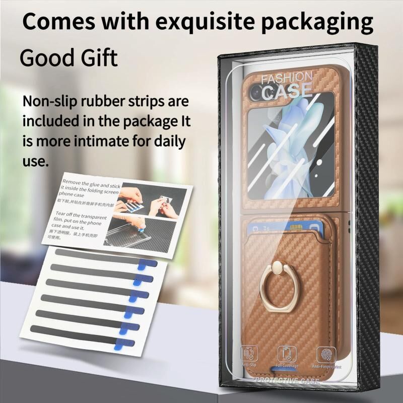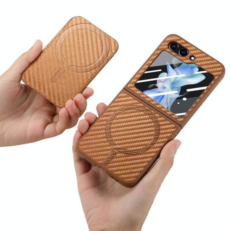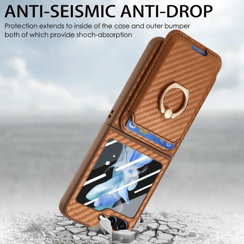 Θήκη τηλεφώνου Samsung Galaxy Z Flip6 από ανθρακονήματα με δακτύλιο και θήκη καρτών MagSafe (Καφέ)