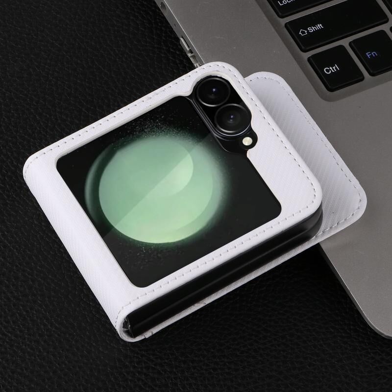 Για Samsung Galaxy Z Flip6 κάρτα Slot PU δέρμα PC υπόθεση τηλεφώνου (λευκό)