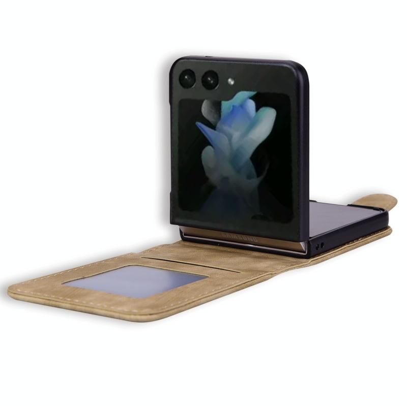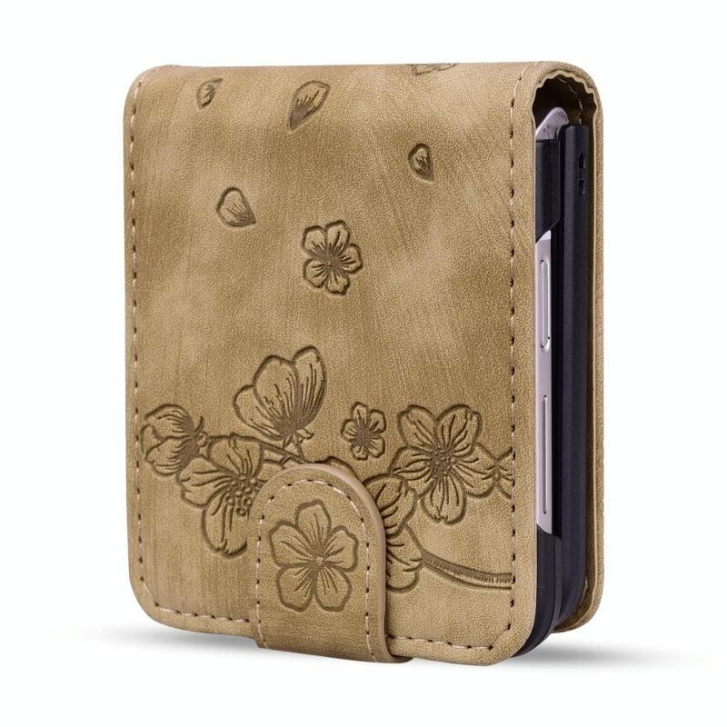Θήκη τηλεφώνου Samsung Galaxy Z Flip6 από δέρμα με ανάγλυφο σχέδιο καρτούν Sakura Cat (Καφέ)