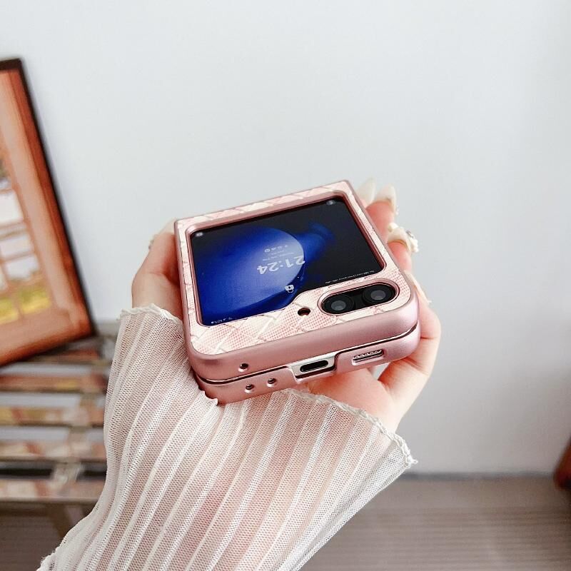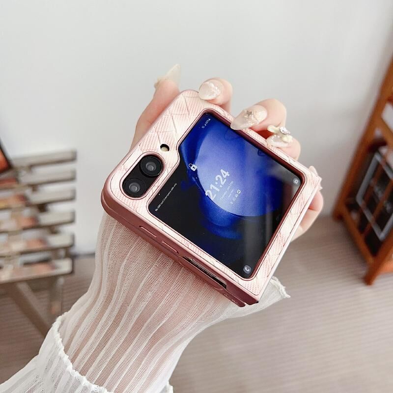 Για Samsung Galaxy Z Flip6 πολύχρωμο υφαντό μοτίβο πλήρους κάλυψης υπόθεση τηλεφώνου (ροζ)