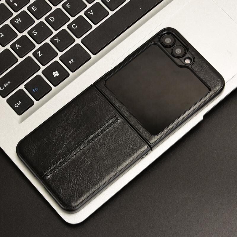For Samsung Galaxy Z Flip6 Cow Pattern Sewing Back Cover Phone Case(Black)