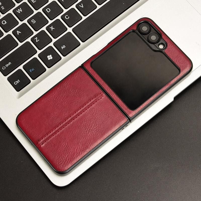 For Samsung Galaxy Z Flip6 Cow Pattern Sewing Back Cover Phone Case(Red)