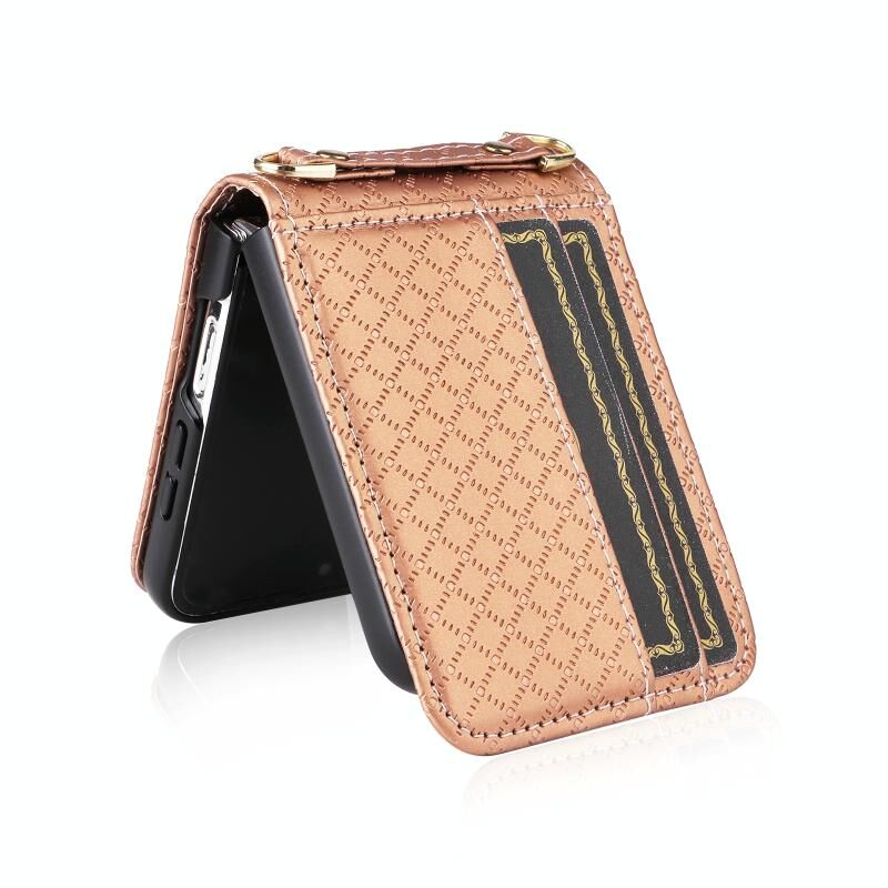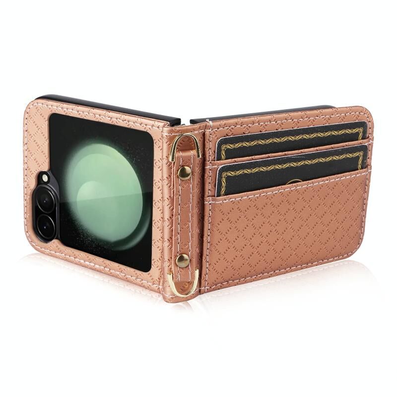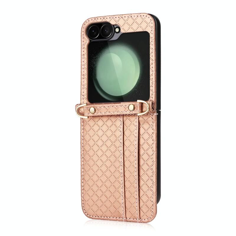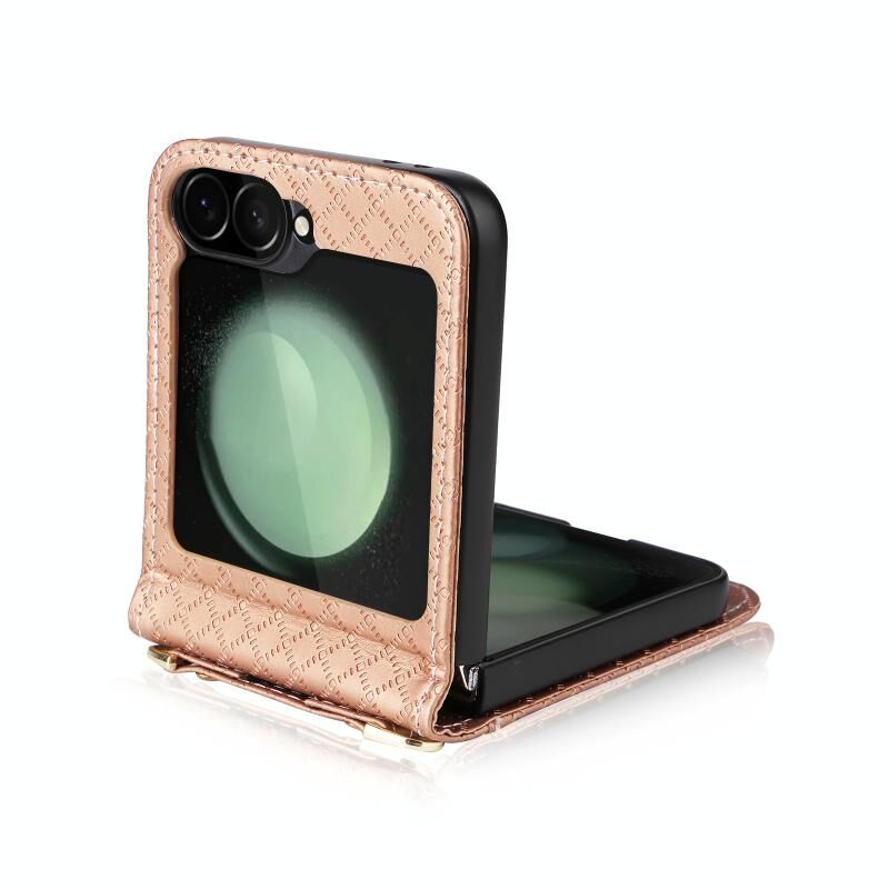 Για Samsung Galaxy Z Flip6 Crossbody Diamond Lattice Πτυσσόμενο τηλέφωνο υπόθεση (Rose Gold)