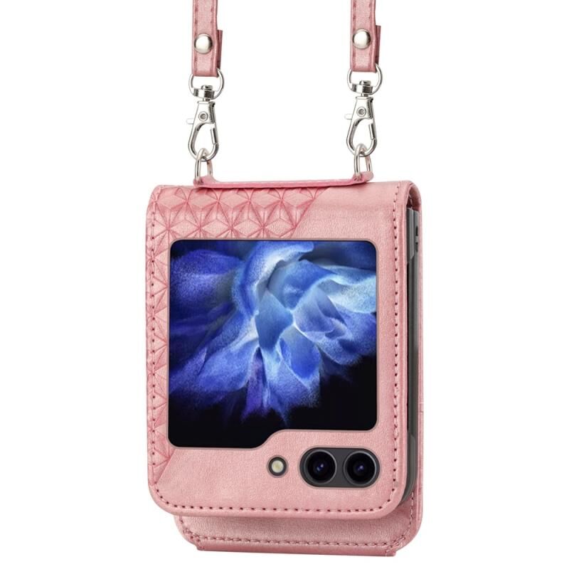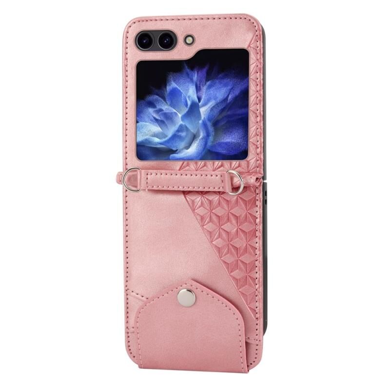 Για Samsung Galaxy Z Flip6 Cubic Grid Calf υφή μαγνητική δερμάτινη θήκη τηλεφώνου (ροζ χρυσό)